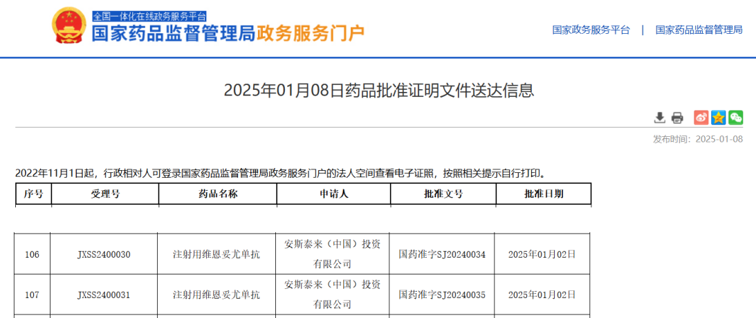 On January 8, 2025,China’s National Medical Products Administration (NMPA) has approved PADCEVTM (enfortumab vedotin) in combination with KEYTRUDA (pembrolizumab) for adult patients with locally advanced or metastatic urothelial cancer (la/mUC).